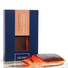 Carpier sorprende con la elaboración de productos que hacen que la cocina sea más original y atrevida. Son ejemplos el lomo o penca de salmón ahumado marinados con verduras, setas, algas, licores...o las chips de piel de salmón, muy sorprendentes e ideales para un aperitivo.