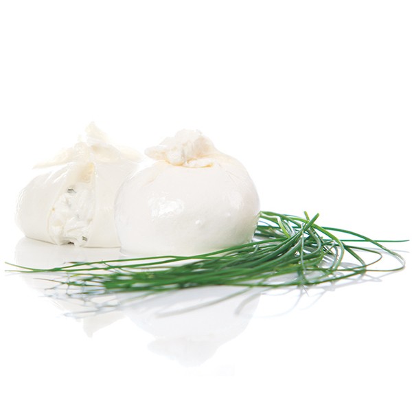 la burrata, un formatge fresc italià de textura cremosa i suau, com la de la mantega.