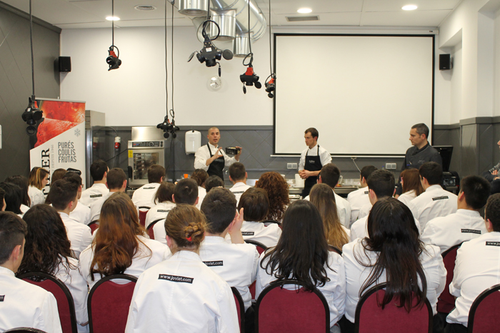 L’elecció de tots aquestes factors determinarà el resultat final de gust i textura de la polpa i així ho van poder comprovar els alumnes de de les escoles d'hostaleria d'Osona i Joviat, que al llarg de la sessió van fer tastos comparatius entre diferents varietats i marques. També van poder seguir una recepta de ‘dolços de fruita’ elaborada per Anthony Audebaud, qui va ser xef pastisser del restaurants Can Fabes (Sant Celoni) i Moments de l’Hotel Mandarin (Barcelona) entre 2010 i 2013 i que, actualment, exerceix com a assessor culinari de Ponthier, l'empresa francesa referent en la comercialització d’ingredients amb base de fruita, congelats i refrigerats.